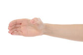 Dziewczyna ręce swędzenie w ramię na białym tle, koncepcja zapalenie skóry