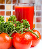 Pomidorowy sok warzywny reprezentuje orzeźwiające drinki i napoje