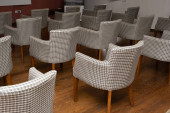 Zdjęcie "czerwony i beżowy fotele są obok restauracji tabel, które są pokryte długo bordowy obrusy" może być wykorzystywane do celów osobistych i komercyjnych zgodnie z warunkami zakupionej licencji Royalty-free. Obraz jest dostępny do pobrania w jakości wysokiej rozdzielczości do 5760x3840.