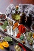 Przyprawy do gotowania z Akcesoria kuchenne na stary tło
