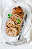 Pieczone rolki od udo z indyka z ziarna gorczycy
