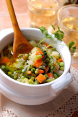 zupa jarzynowa z słomek słony i surowa wędzona kiełbasa