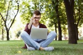 Mężczyzna, trzymając kubek kawy i mówić na jego smartphone