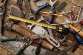 Narzędzia do napraw na tle drewna z miejsca kopii