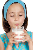 słodkie happy mały chłopiec Afryki w Dżinsowa koszula trzymając szklankę mleka na białym tle