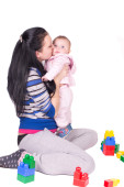 Kolorowe ręce pomalowane w piękne Młoda dziewczyna. na białym tle