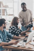 Zdjęcie "Chętnie współpracują ze sobą. Grupa młodych ludzi nowoczesnego komunikowania się ze sobą i uśmiechając się pracując w sali posiedzeń zarządu" może być wykorzystywane do celów osobistych i komercyjnych zgodnie z warunkami zakupionej licencji Royalty-free. Obraz jest dostępny do pobrania w jakości wysokiej rozdzielczości do 5760x3840.