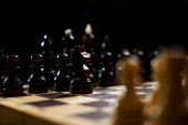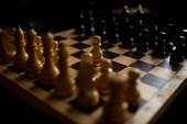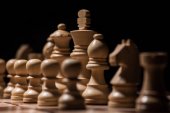 figury szachowe zamówione na szachownicy na białym tle na czarny, biznes koncepcja