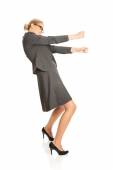 portret woman.isolated szczesliwym biznesem na białym