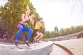 Preteen dziewczyna Afryki, inline skater w ochronnej, ćwiczyć slalom do przodu o skatepark odkryty