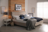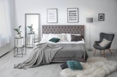 Zdjęcie "Sypialnia stylowe wnętrze i wygodne łóżko" może być wykorzystywane do celów osobistych i komercyjnych zgodnie z warunkami zakupionej licencji Royalty-free. Obraz jest dostępny do pobrania w jakości wysokiej rozdzielczości do 5760x3840.