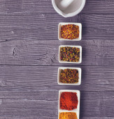 Łyżki z sosów czerwony na czarnym tle, widok z góry