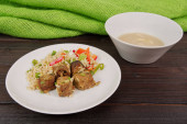Zdjęcie "Tajski tempeh z kolendrą i ryż biały" może być wykorzystywane do celów osobistych i komercyjnych zgodnie z warunkami zakupionej licencji Royalty-free. Obraz jest dostępny do pobrania w jakości wysokiej rozdzielczości do 5760x3840.