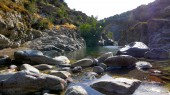 Lotu ptaka widok z góry przez starożytnych kolebkowaty most kamienny Genueńczyków w Asco. Korsyka, Francja.