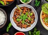 Zdjęcie "Azjatki, boczek i finocchetto curry z ryżem i sajgonki kawałki" może być wykorzystywane do celów osobistych i komercyjnych zgodnie z warunkami zakupionej licencji Royalty-free. Obraz jest dostępny do pobrania w jakości wysokiej rozdzielczości do 5760x3840.