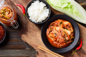 Azjatki, boczek i finocchetto curry z ryżem i sajgonki kawałki