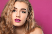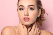 Portret młodej kobiety z piękne brwi na ciemnym tle