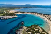 Panoramiczny widok z lotu ptaka plaży voidokilia, jedną z najlepszych plaż w śródziemnomorskiej Europy, pięknej laguny Voidokilia z wysokiej punktu widzenia, Messinia, Grecja