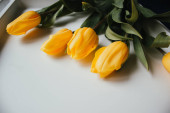 Zdjęcie "Tulipany żółte wiosna świeży na ciemnym tle drewnianych w karafki szkła, z wody i krople na liściach. w bezpośrednie i światło" może być wykorzystywane do celów osobistych i komercyjnych zgodnie z warunkami zakupionej licencji Royalty-free. Obraz jest dostępny do pobrania w jakości wysokiej rozdzielczości do 5760x3840.