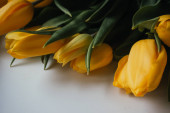 Zdjęcie "Tulipany żółte wiosna świeży na ciemnym tle drewnianych w karafki szkła, z wody i krople na liściach. w bezpośrednie i światło" może być wykorzystywane do celów osobistych i komercyjnych zgodnie z warunkami zakupionej licencji Royalty-free. Obraz jest dostępny do pobrania w jakości wysokiej rozdzielczości do 5760x3840.