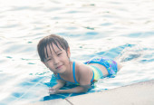 Azjatyckie dziewczyna bawi się w basenie, ustanawiające
