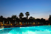 zachód słońca i basen w luksusowy hotel, Szarm el-Szejk, e