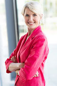 optymistyczne średniej wieku kobieta portret na czarnym tle
