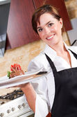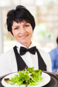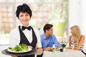 szczęśliwy kelnerka obsługujących klientów w kawiarni