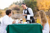 Młoda para miejsce obiad aby kelnerka w restauracji