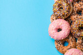 Zdjęcie "Różnorodnych pączki na niebieskim tle" może być wykorzystywane do celów osobistych i komercyjnych zgodnie z warunkami zakupionej licencji Royalty-free. Obraz jest dostępny do pobrania w jakości wysokiej rozdzielczości do 5760x3840.