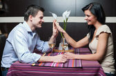 Młoda para razem po romantyczną kolację w restauracji
