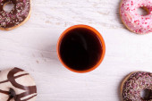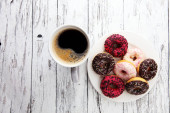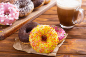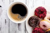 Dougnut wypełnione dżemem crimson i zimna Kawa - Chanuka