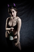 Zdjęcie "Młode seksowne kobiety w czarnej bieliźnie rośnie jej rękę z butelki o" może być wykorzystywane do celów osobistych i komercyjnych zgodnie z warunkami zakupionej licencji Royalty-free. Obraz jest dostępny do pobrania w jakości wysokiej rozdzielczości do 5760x3840.