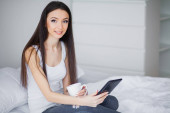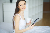 Zdjęcie "młoda piękna kobieta siedzi na łóżku" może być wykorzystywane do celów osobistych i komercyjnych zgodnie z warunkami zakupionej licencji Royalty-free. Obraz jest dostępny do pobrania w jakości wysokiej rozdzielczości do 5760x3840.