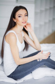 Zdjęcie "młoda piękna kobieta siedzi na łóżku" może być wykorzystywane do celów osobistych i komercyjnych zgodnie z warunkami zakupionej licencji Royalty-free. Obraz jest dostępny do pobrania w jakości wysokiej rozdzielczości do 5760x3840.