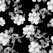 Monochromatyczne wzór bezszwowe gałąź kwiaty apple. Białe tło.
