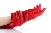 Dłoń w rękawicy z depilacji pastą