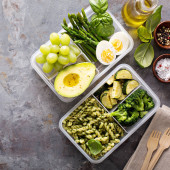 Wegetariański posiłek prep pojemniki z makaronem i warzywami