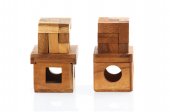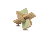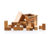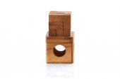 Drewniane puzzle jest moduł. Na białym tle na białym tle. Szczelnie-do góry.