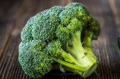 Świeże brokuły w drewnianym pudełku na drewnianej powierzchni
