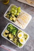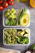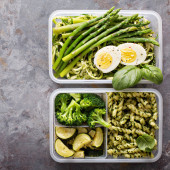Wegetariański posiłek prep pojemniki z makaronem i warzywami