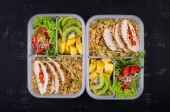 Zdjęcie "Zdrowy posiłek prep pojemniki z kurczaka i ryżu" może być wykorzystywane do celów osobistych i komercyjnych zgodnie z warunkami zakupionej licencji Royalty-free. Obraz jest dostępny do pobrania w jakości wysokiej rozdzielczości do 5760x3840.