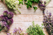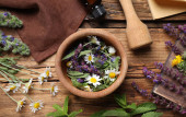 Zdjęcie "Dzika wiosna jadalnych ziół na drewniane łyżki" może być wykorzystywane do celów osobistych i komercyjnych zgodnie z warunkami zakupionej licencji Royalty-free. Obraz jest dostępny do pobrania w jakości wysokiej rozdzielczości do 5760x3840.