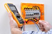 Technik elektryk z pracy na mieszkalny panel elektryczny