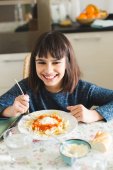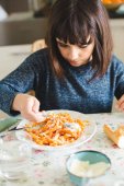 Zdjęcie "Szczęśliwa dziewczynka jedzenie makaron" może być wykorzystywane do celów osobistych i komercyjnych zgodnie z warunkami zakupionej licencji Royalty-free. Obraz jest dostępny do pobrania w jakości wysokiej rozdzielczości do 5760x3840.
