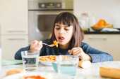 Zdjęcie "Jej ulubionym pożywieniem są makarony" może być wykorzystywane do celów osobistych i komercyjnych zgodnie z warunkami zakupionej licencji Royalty-free. Obraz jest dostępny do pobrania w jakości wysokiej rozdzielczości do 5760x3840.