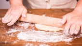 Kobieta co ciasto z mięsa w domu