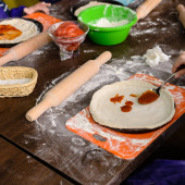 Kobieta co ciasto z mięsa w domu