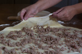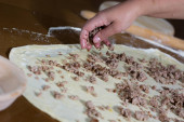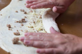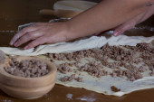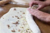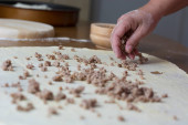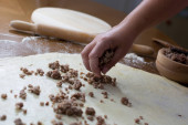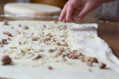 Kobieta co ciasto z mięsa w domu