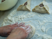 Kobieta co ciasto z mięsa w domu